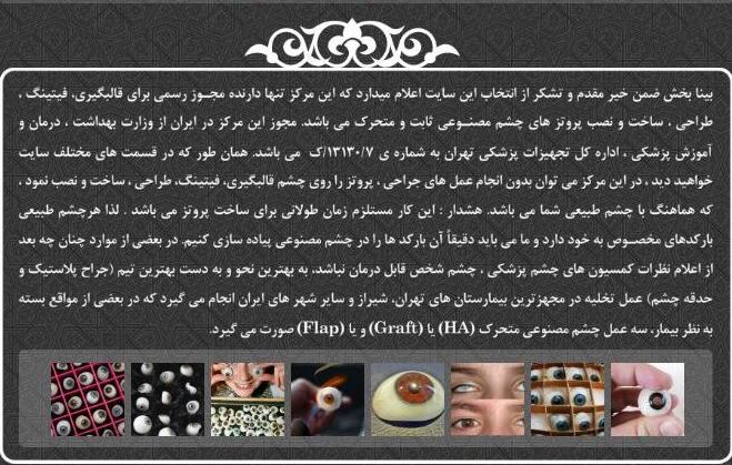خدمات : قالب گيري ، طراحي ،ساخت و نصب پروتز هاي چشمي (چشم مصنوعي) ثابت و ومتحرک HA Hydroxyapatite و Bioceramic و Conformer و Espherball و sliv peg titaniom
